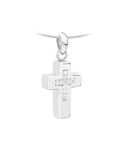 Ash pendant 14k. white gold 'Cross' (10 diamonds / 0.005 crt.)