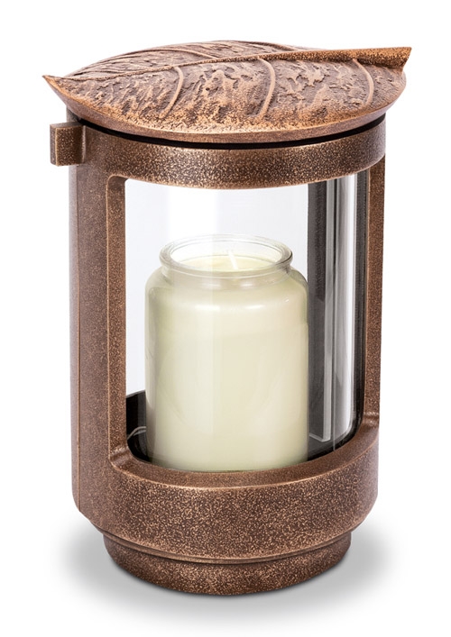Cemetery or grave lanterns are votive lamps containing a candle. The candle can be a real candle, a tealight or a flameless candle with perpetual LED. The lantern is ground attached (dowel on the bottom). The light (candle) is not included, please purchase separately.